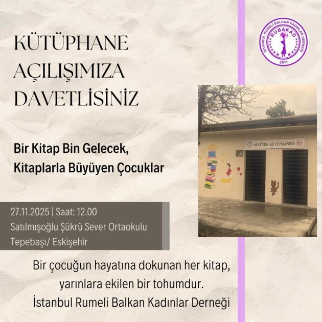 Yeni bir eğitim projesi kapsamında Tepebaşı Satılmışoğlu Şükrü Sever Ortaokulu'na kazandırdığımız kütüphane açılışı için Eskişehir'e gidiyoruz..